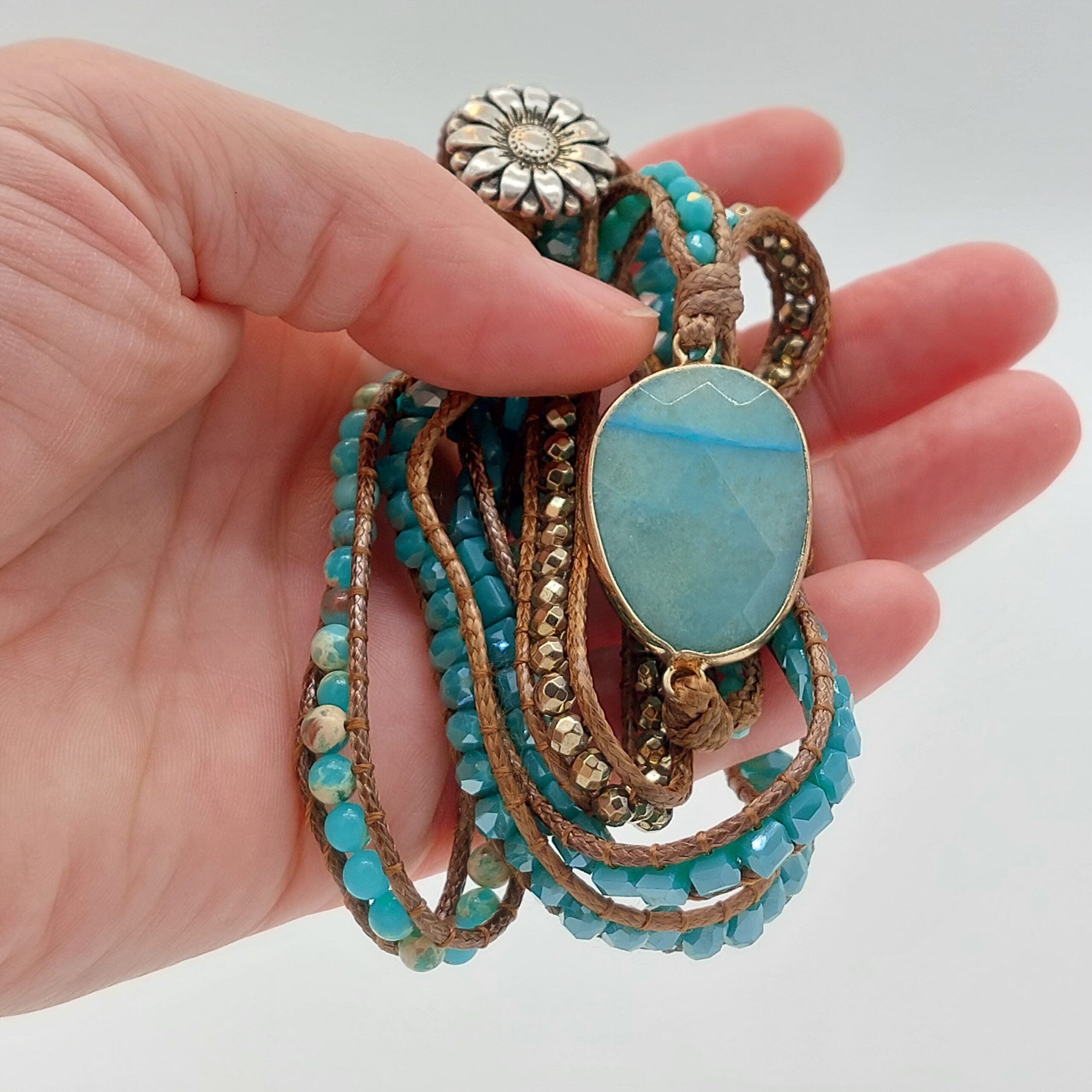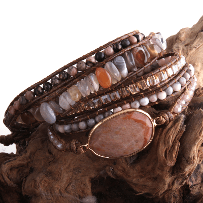Excluzív, egyedülálló design. Bohém stílusú, több soros ásvány karkötő.